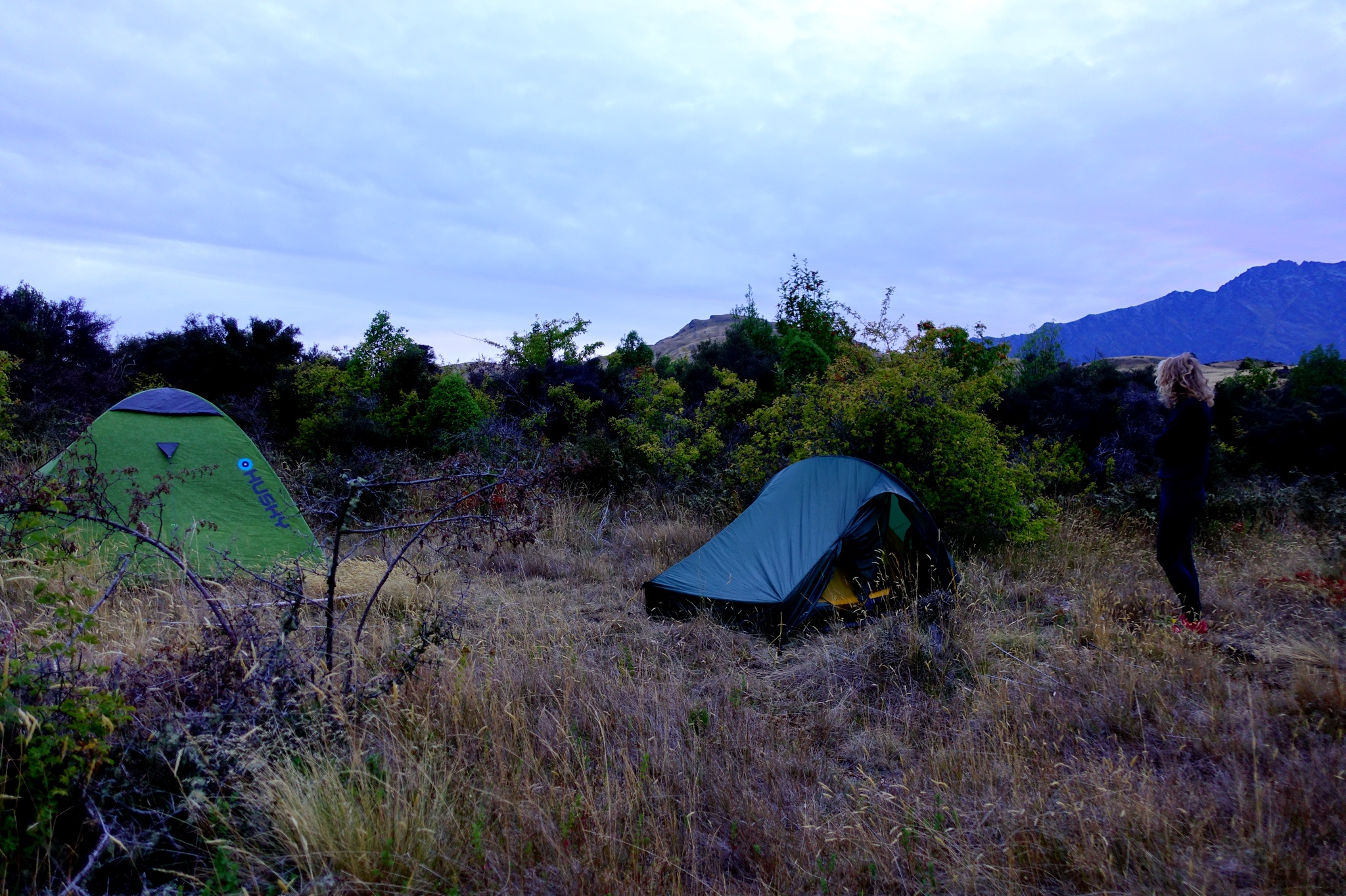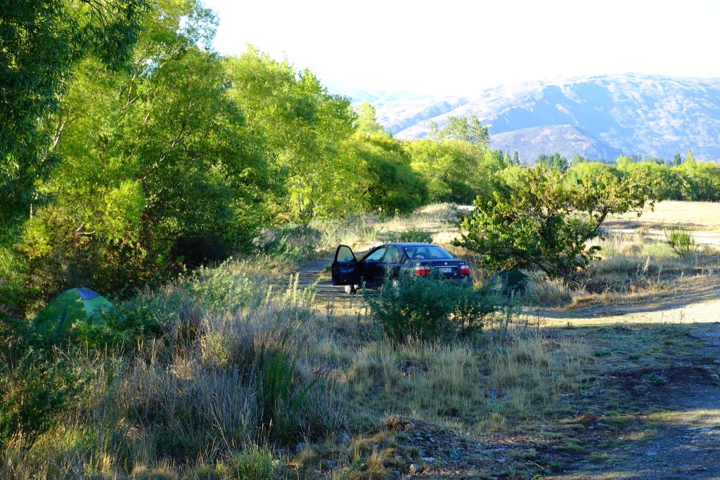 Queenstowni jõudes oli meil tund aega enne, kui saabusid Allan ja Olga. Hakkasime otsima meie kasvavale eestlaste kogukonnale ehk Kuusikule telkimispinda. Kõigepealt sõitsime tuttavasse Jack’s Pointi ja sealt leidsime mingi võimaliku ööbimiskoha kruusateede vahel. Kui me aga sõitsime Kelvin Heights-i Recreation Reserve nimelisse rohealale, kus olime Jassuga ka enne jalgratastega ringi kolanud, leidsime ideaalse öömaja sealses männimetsas. Siin puudusid “no camping” sildid, koeraomanikud käisid oma neljajalgseid seal jalutamas ja avalik WC oli ka lähedal. Oli tõesti ilus koht – nii kena, et siia otsustasime jääda järgmiseks kolmeks ööks.