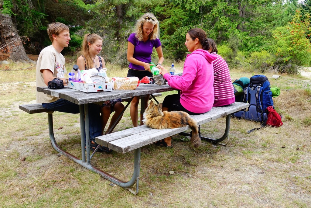 Tore oli näha Allanit ja Olgat üle pika aja. Viimati kohtusimegi siis, kui pidasime üheskoos 2014/2015 aastavahetust Põhja-Norras Allani-Olga kodus Honningsvågis virmalistest ümbritsetuna. Oma telkimisalasse jõudes pidasime kohe piknikku Kuuekesi, sest meie päralt oli ka kena puidust laud. Saime endale terveks õhtuks ka kohaliku nurruva ja tuunikala luniva Kodukassi.