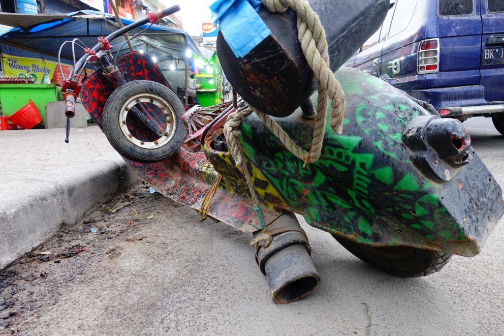 Medani ühistranspordi bussijuhid näiteks koguvad raha, viskavad selle kätte saades kägarasse bussi armatuurile ja siis valgusfoori taga foorituld oodates (Medani linnas) sirgendavad igavusest kägardatud raha käte vahel.. Inimestel on siin jälle putkad ja ärid iga nurga peal püsti (müüakse kõiki esmatarbekaupu, peamiselt siiski toiduaineid, valmistoitu jne) , majad on väiksed ja lagunenud, puuvilja ei müüda laua tagant või letilt, ikka hoopis põrandalt, kuhu miski räbalake kile vms alla pandud. Siin-seal vedeleb prügi, tuleb ninna törtsuke läppunud haisu (kui mingid juurikad tänava äärde vedelema jäänud muu prügiga). Inimesed paistavad soojad, sõbralikud, kannatlikud, õnnelikumad malaislastest näiteks. Vaata kuhu tahad, linnapildis igav ei hakka. Kui eurooplast ehk sind näevad, hõikavad õnnelikult nii lapsed, noored kui vanad (mitte kõik, aga ikka päris paljud!): “Hello, mister!” või siis “Hello, miss!”. Kas pole mitte armas – niimoodi pole meid Jassuga hüütud ei Euroopas, Vietnamis ega Malaisias, pealekauba näeb see välja vanamoodsama inglise keelse kirjapildina :D. Kõige hämmastavam, et Medan on 2 miljoni inimesega miljonilinn (Indoneesias suuruselt kolmas, kui ma faktis ei eksi) ja siin ikka elu nii armsalt algeline….
