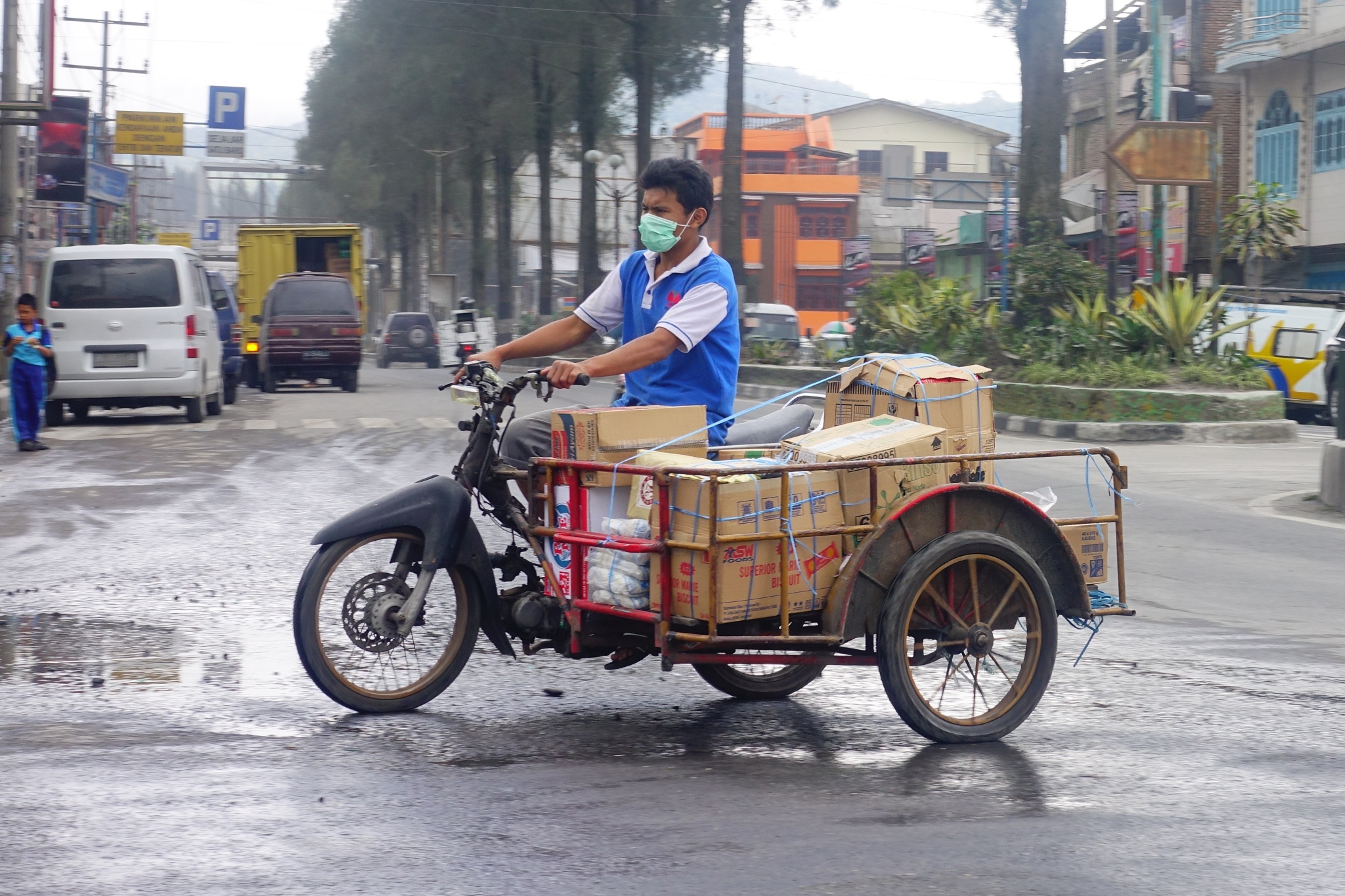 Aga …me pole päris esimest korda mägedes ja kuna tegemist olla lihtsa ronimisega, siis pole meile vaja lapsehoidjat, kes käest kinni näitaks ja seletaks, mis vulkaan on ja kuhu astuda jne. Oleme selliseid giide juba küllalt näinud. Korraldaja ütles, et me saame ise valida, kuhu ja kui kiiresti lähme ja kui vaja, võib giid meile niipaju aega mäe otsas anda, kui tahame, aga ikkagi tundus imelik n-ö passiva turvamehega vulkaani otsas rahu ja vaikust nautida. Seega otsustasime omal käel sinna minna, sest ka ilmaprognoos oli pigem pilvine ja vihmane. Uurisime, kuidas me saaks odavaima variandiga Berastagist (ehk linnast, kus ööbisime) linna äärde ca 4km kaugusele, kuhuni linna n-ö ühistransport sõidab. Bussike oli rohelist värvi ja pileti hind oli 4000 IDR ehk 25 eurosenti. Bussijuht küll küsis, et kas me plaanime jala vulkaani otsa minna, aga tema keeleoskus oli üsna halb, seega ei saanud täpselt aru, mis ta mõtleb ja ütlesime et JAH ….sest mismoodi siis veel mäkke saaks kui ikka jalavaevaga.