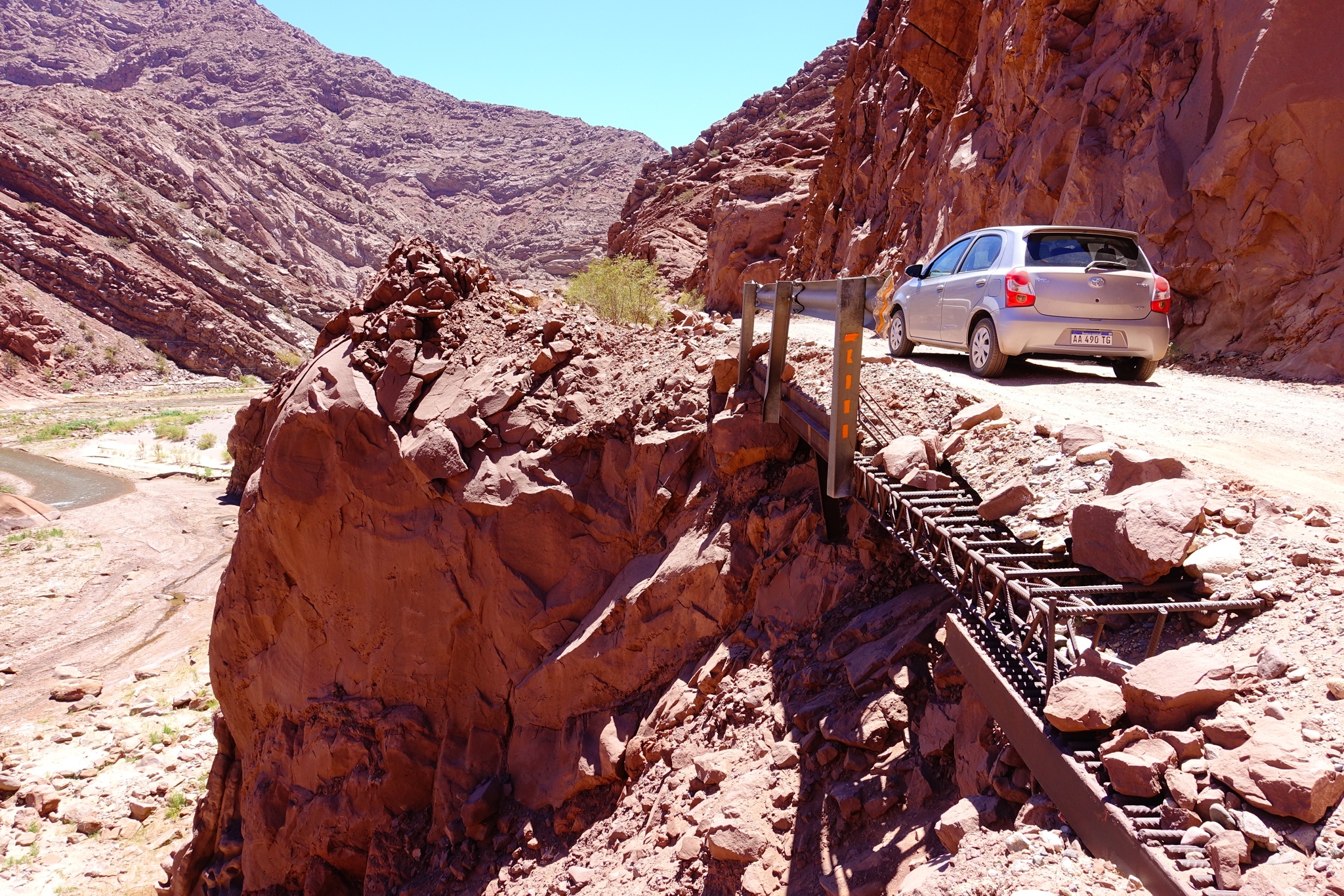 Leidsime punased kaljud, mini Grand Canyoni, kui tegime peatuse maantee ääres Talampaya rahvuspargi äärealal 🙂 Tegemist on kuivanud jõesängiga, mida ääristasid kuni 8 m kõrgused kaljud. Jalutasime ca 2 km lõõmava päikse käes jõesängis ning saime sellest kogemusest päeva esimese highlight’i.